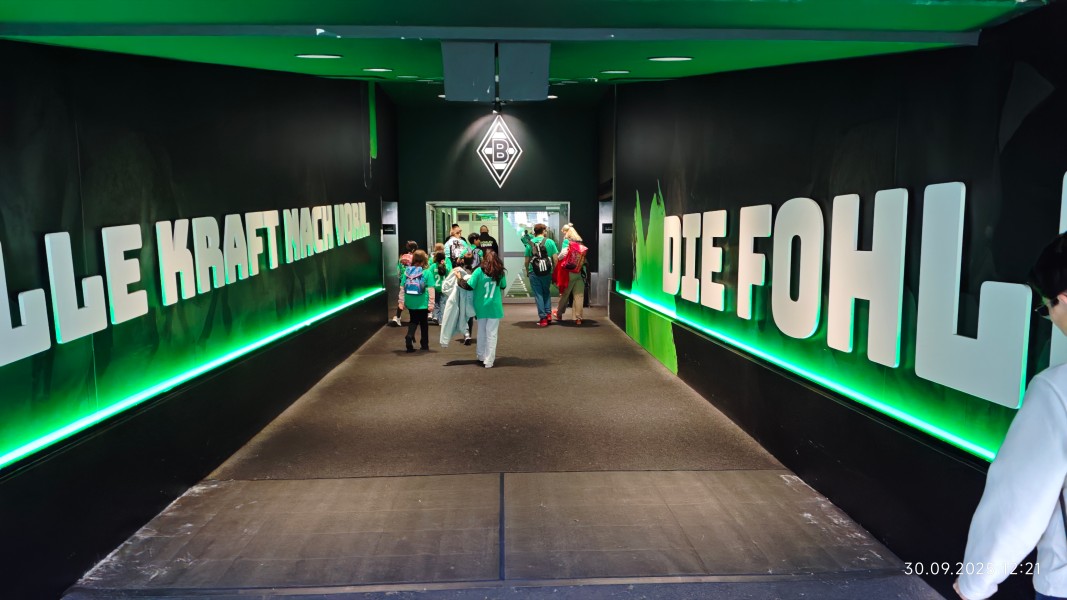 Am 30. September durften einige unserer Schülerinnen und Schüler an einer besonderen Stadionführung bei Borussia Mönchengladbach teilnehmen – organisiert durch die AOK. Der Tag wird uns noch lange in Erinnerung bleiben: Wir konnten das Stadion von oben bis unten erkunden, durch den Spielertunnel laufen, auf der Auswechselbank Platz nehmen und einen Blick hinter die Kulissen werfen.