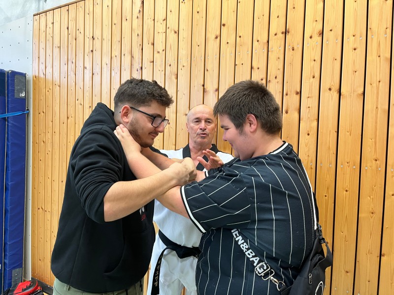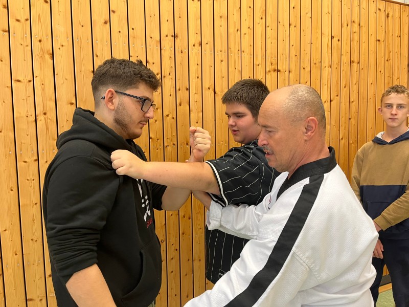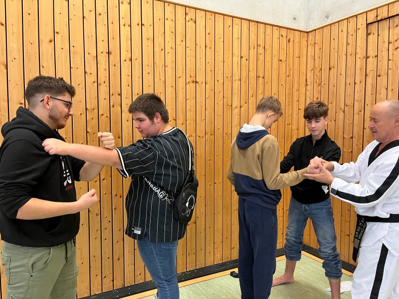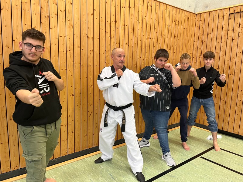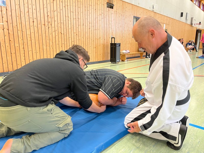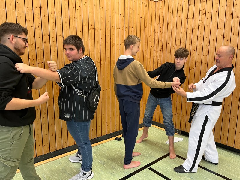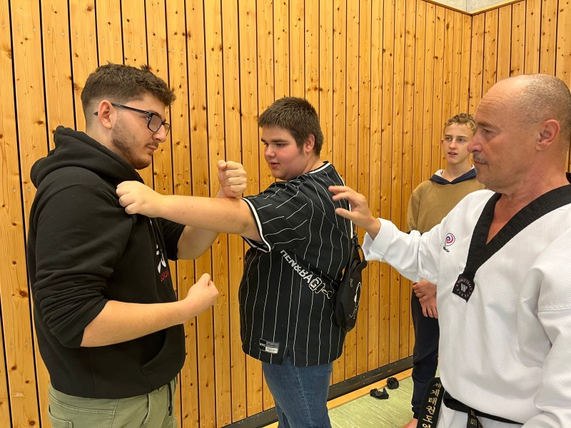 In der Woche vom 15.-19.09.2025 fand zum wiederholten Mal an unserer Schule eine Themenwoche zur „Prävention sexualisierter Gewalt“ statt. Neben schulinternen und externen Angeboten wurden wir zum ersten Mal durch den Verein „Askado“ aus Hückelhoven unterstützt. Herr Cevahir hat die gesamte Woche je 2 Klassen in Selbstverteidigung geschult. Dabei hat er unserer Schüler*innen sehr individuell und differenziert begleitet und allen erste Erfahrungen in Selbstverteidigung vermittelt. Alle Schüler*innen sind hoch motiviert gewesen und konnten ihren Fähigkeiten entsprechend Erfolge und Erfahrungen sammeln.